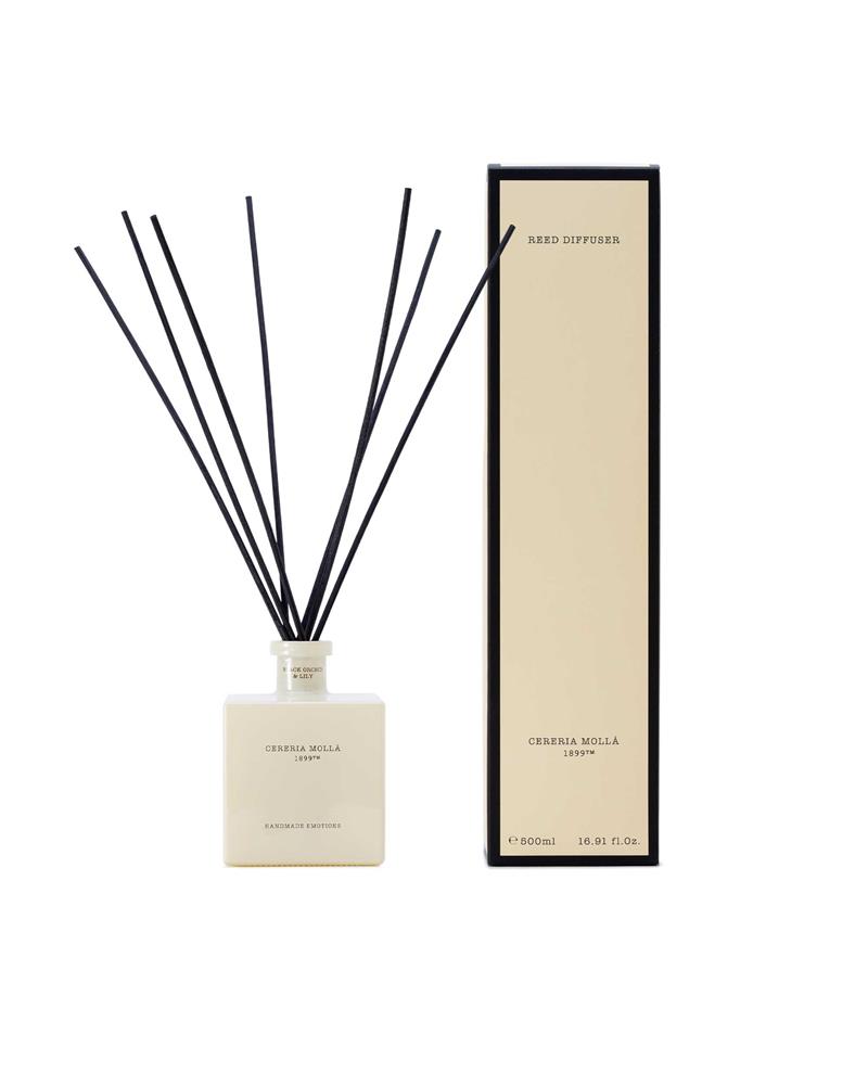 Chez Cerería Mollá 1899, nous perpétuons un savoir-faire artisanal ancestral, en respectant des méthodes de production traditionnelles qui garantissent une qualité incomparable. Nos emballages sont également recyclables et certifiés FSC, assurant un respect total de l'environnement à chaque étape de la fabrication. Offrez à votre intérieur une expérience sensorielle unique avec nos mikados parfumés, aux fragrances naturelles et à base d'huiles essentielles. Leur design élégant et leur diffusion longue durée créent une atmosphère chaleureuse et apaisante.